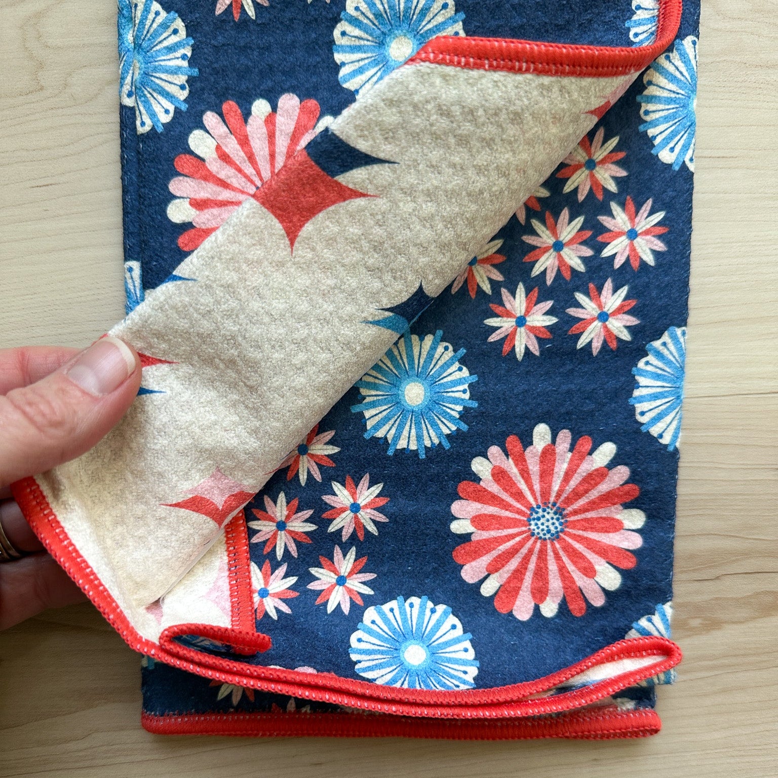 Get ready to bask in the best of summer with this vibrant and reversible towel! Featuring a playful mix of Paper Medallions and Summer Breeze prints, this towel is the perfect addition to your summer essentials—bringing style, sustainability, and versatility to your home. Whether used in the kitchen, bathroom, or for workouts, this towel is designed to be as functional as it is beautiful.