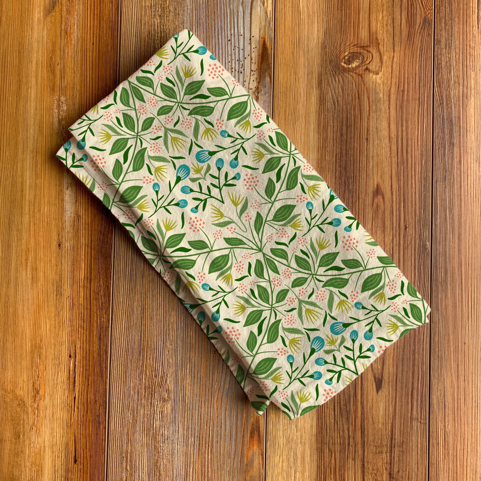 A delicate repeating floral pattern in calming blue tones gives this towel a timeless and elegant feel. Great for drying dishes, styling a classic kitchen, or a perfect present for to someone who loves floral designs.