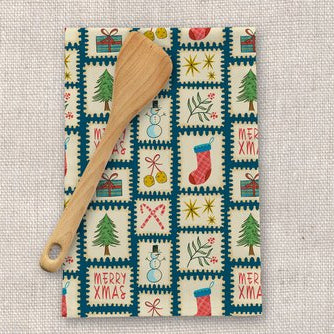 A nostalgic postage stamp pattern featuring different holiday motifs, inspired by classic letters to Santa. Great for drying hands, adding festive charm to your home, or perfect for holiday or housewarming gifts during the holiday season.