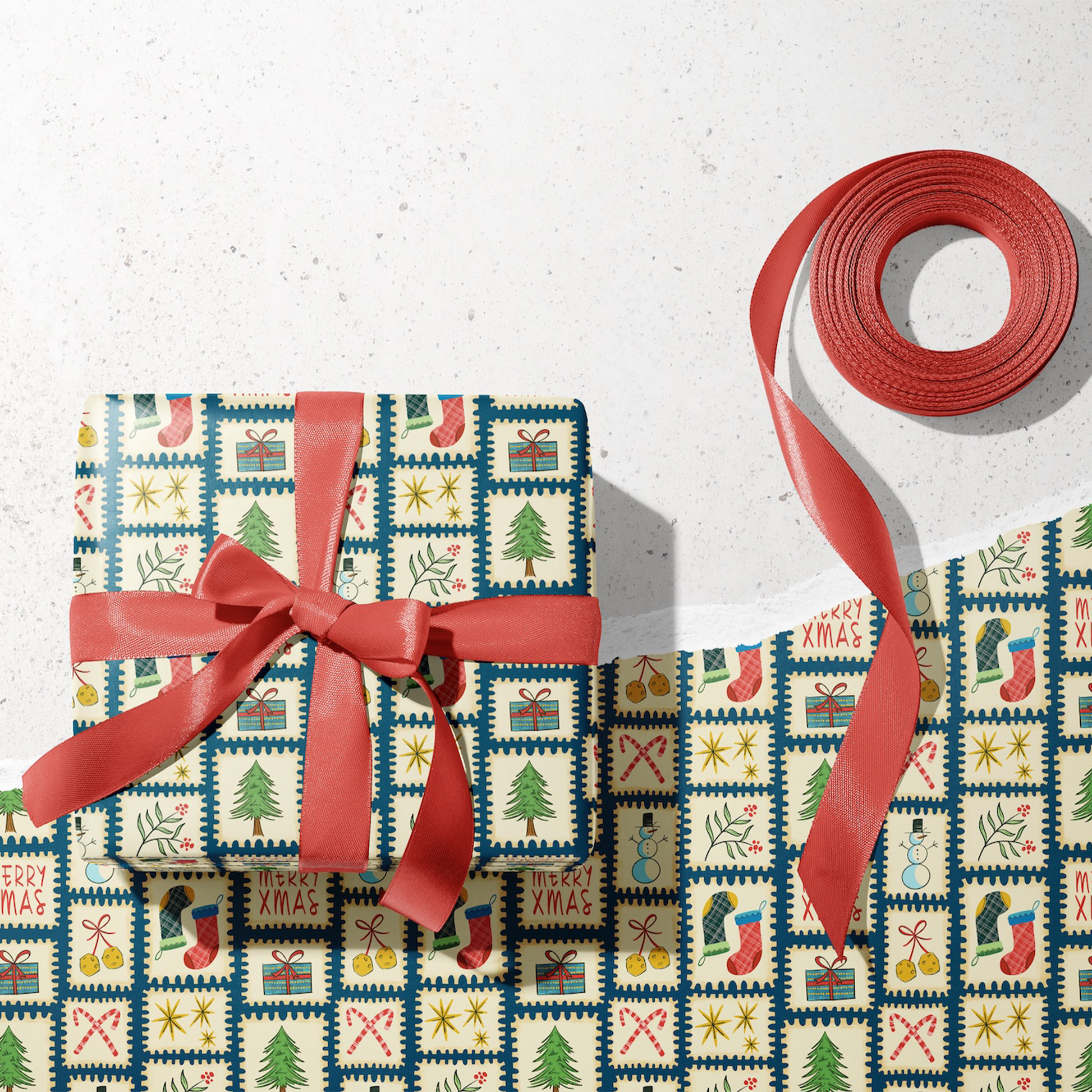 Celebrate the season with Dear Santa Wrapping Paper. A repeat pattern of holiday-themed postage stamps, adding a whimsical and nostalgic touch to every present.