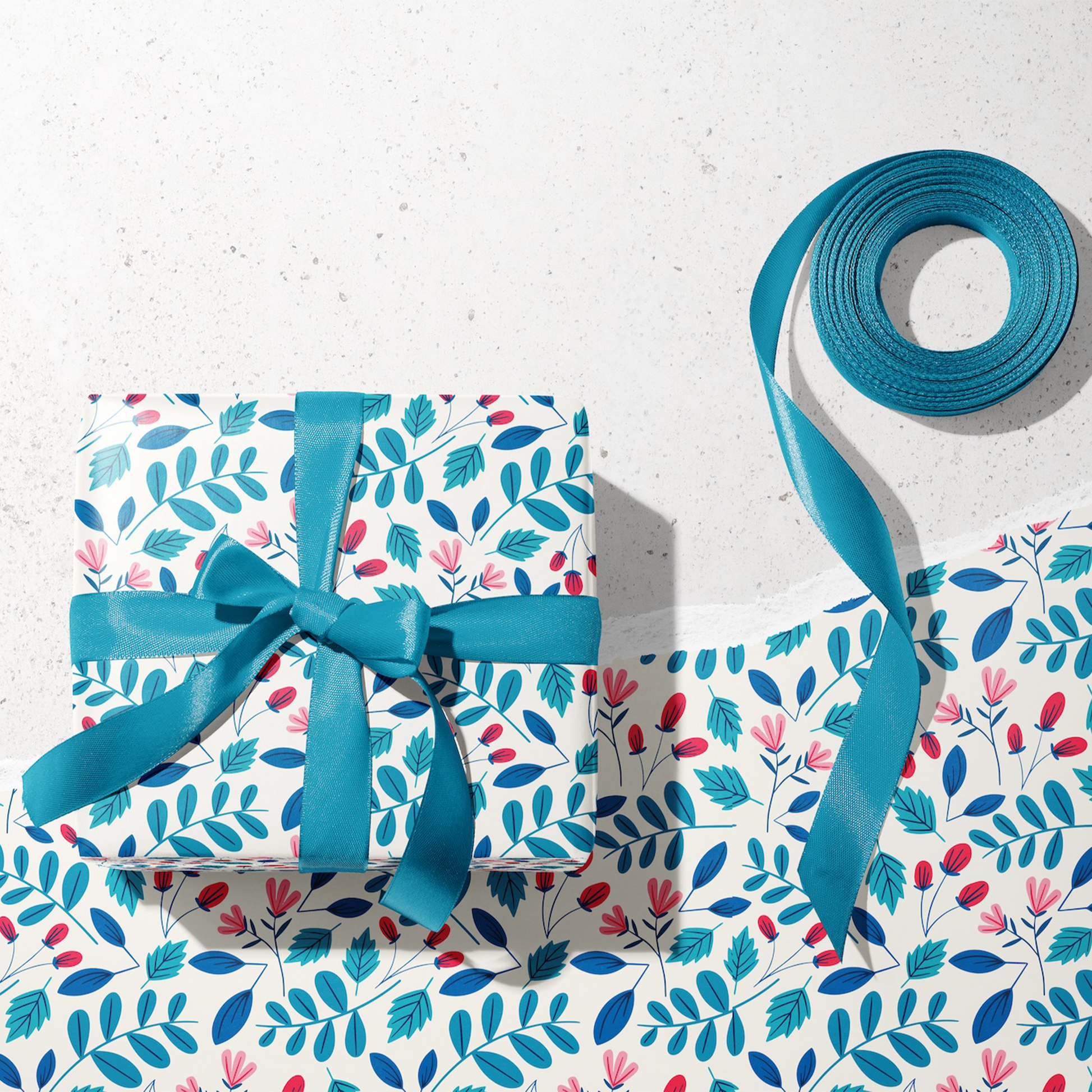 Wrap your gifts in timeless elegance with Deep Frost Wrapping Paper. A stunning repeat of pink and red flowers with blue leaves on a soft cream background, bringing warmth and sophistication to any occasion.