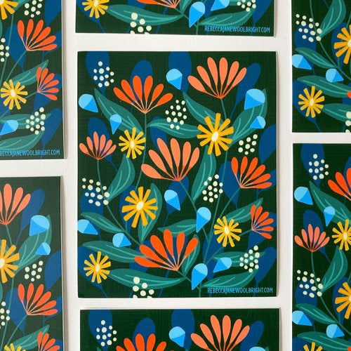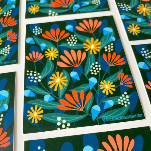 Experience nature’s timeless beauty with the Fall Bloom Vinyl Sticker—a stunning floral design that captures the warm hues of autumn while remaining perfect year-round. Featuring vibrant orange, yellow, and blue flowers set against a deep green background, this sticker brings a touch of seasonal charm wherever it goes.