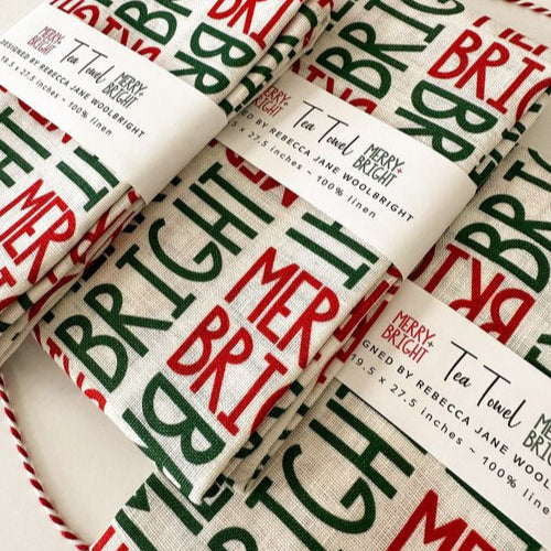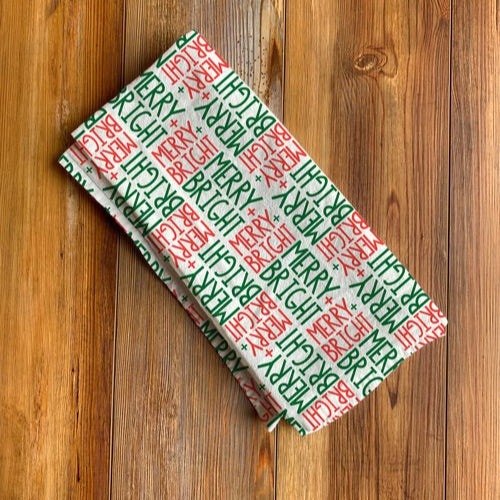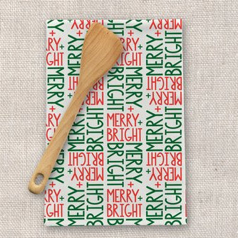 Hand-drawn Merry + Bright typography adds a festive touch in a simple yet cheerful design. Ideal for cleaning up after holiday baking, adding seasonal cheer, or A stylish and practical gift for during the holidays.