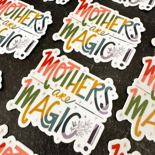 Celebrate the unsung heroes with the Mothers Are Magic Vinyl Sticker—a heartfelt tribute to moms everywhere! This hand-lettered design features the phrase "Mothers Are Magic" in fun rainbow colors, playfully surrounded by twinkling stars, adding a touch of enchantment and love.