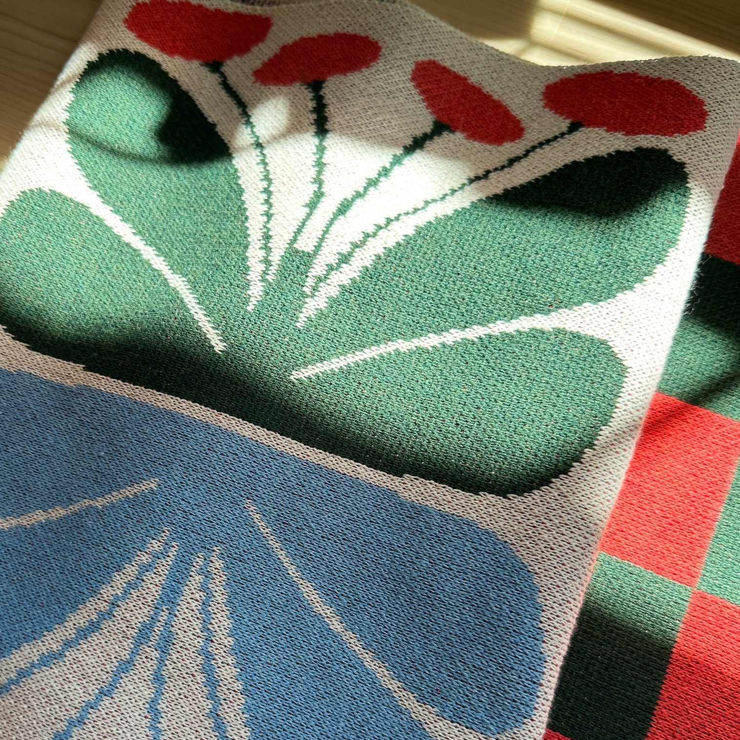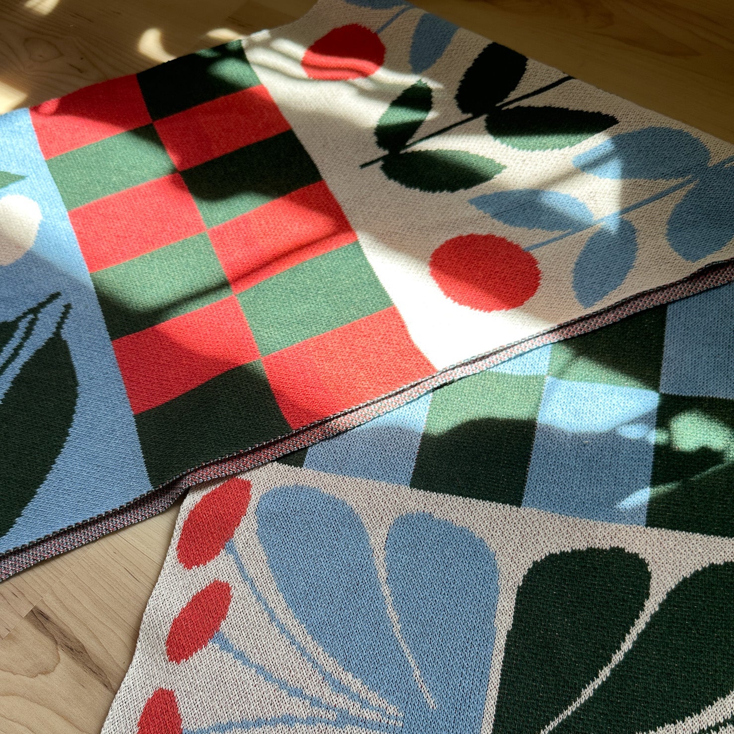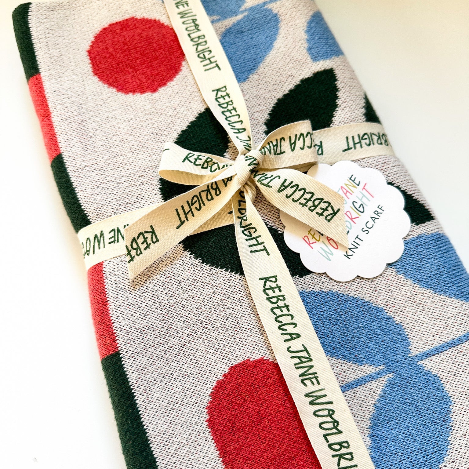 Wrap yourself in color this season. This bold knit scarf features Rebecca Woolbright’s signature floral artwork in four vibrant shades, turning a cozy winter essential into a wearable piece of art.