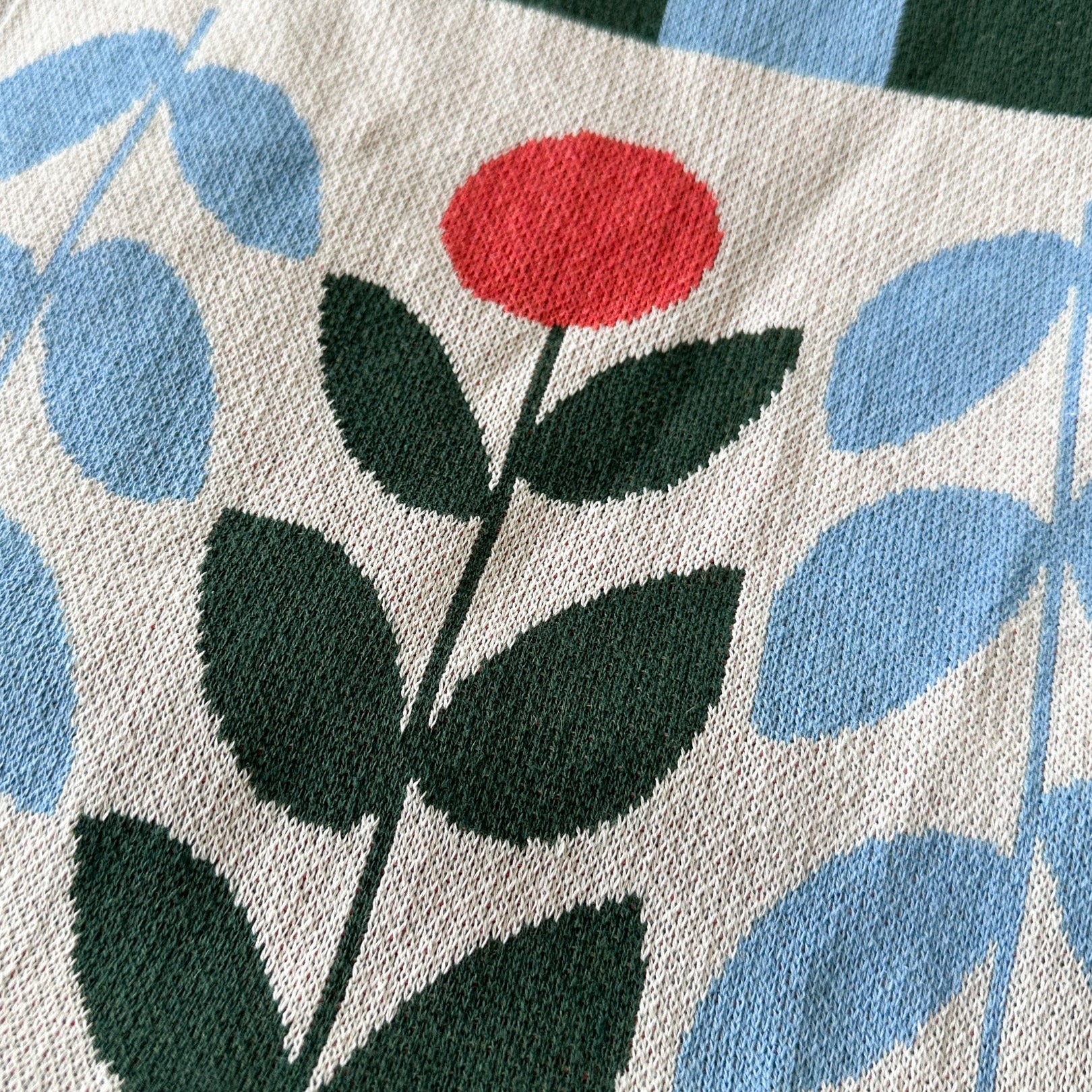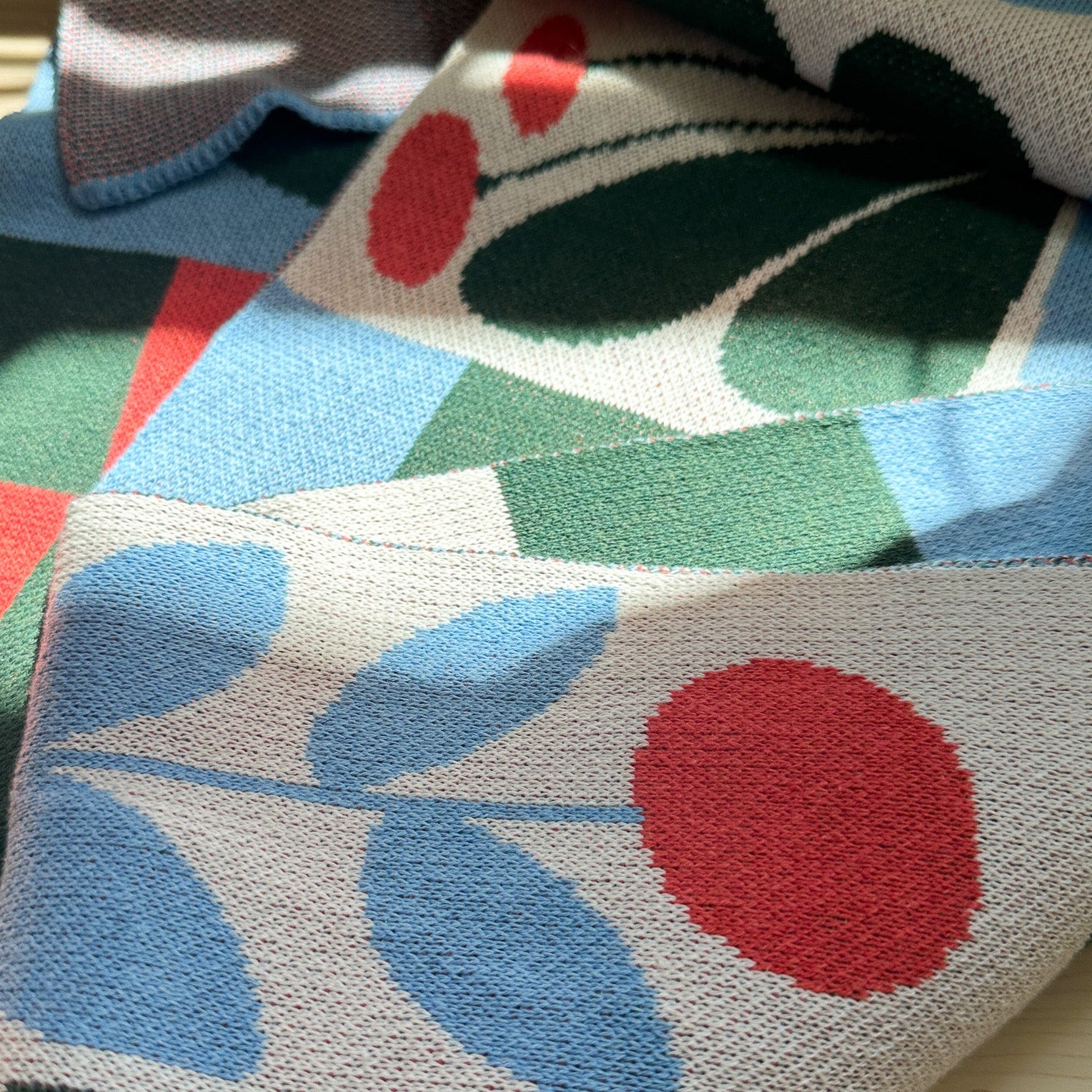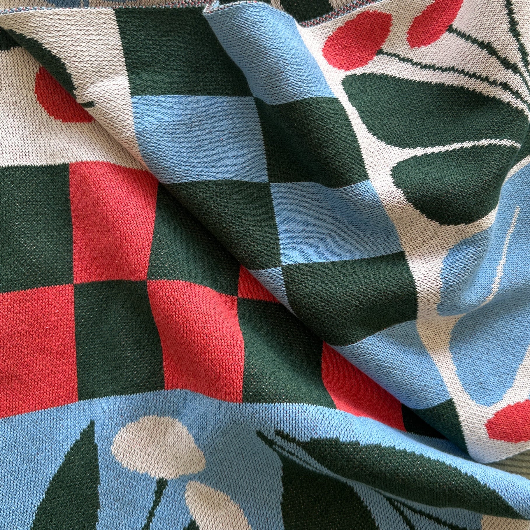 Wrap yourself in color this season. This bold knit scarf features Rebecca Woolbright’s signature floral artwork in four vibrant shades, turning a cozy winter essential into a wearable piece of art.