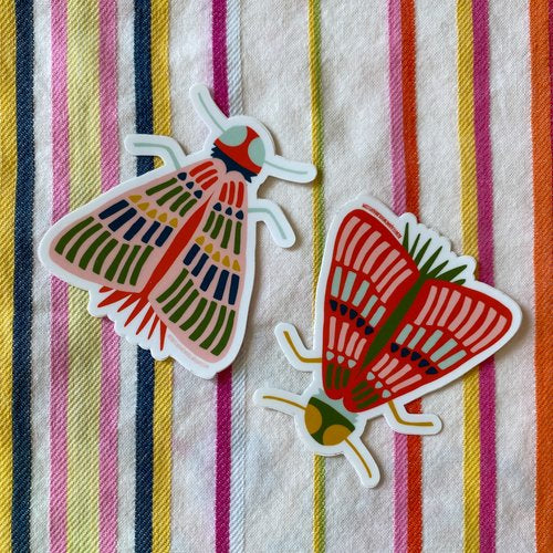 Celebrate the beauty of nature with the Two Love Bugs Sticker Set—a charming pair of hand-drawn moth designs that capture both ethereal elegance and bold vibrancy. This set combines: