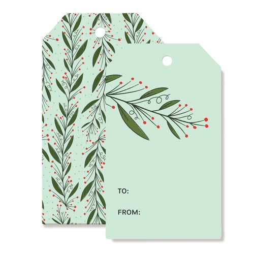 Add a touch of holiday romance to your gifts with the Under the Mistletoe Gift Tags! Featuring a delightful vine swooping across the top, this design sets the scene for a festive rendezvous under the mistletoe. Flip it over to reveal a charming repeat pattern of mistletoe and vines, bringing an extra dose of holiday cheer to every present.
